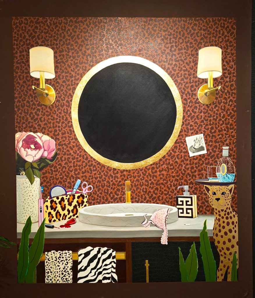 Acrylic, oil, gold leaf on canvas 50″ x 60″ (Vanities II, the Jester), 2026