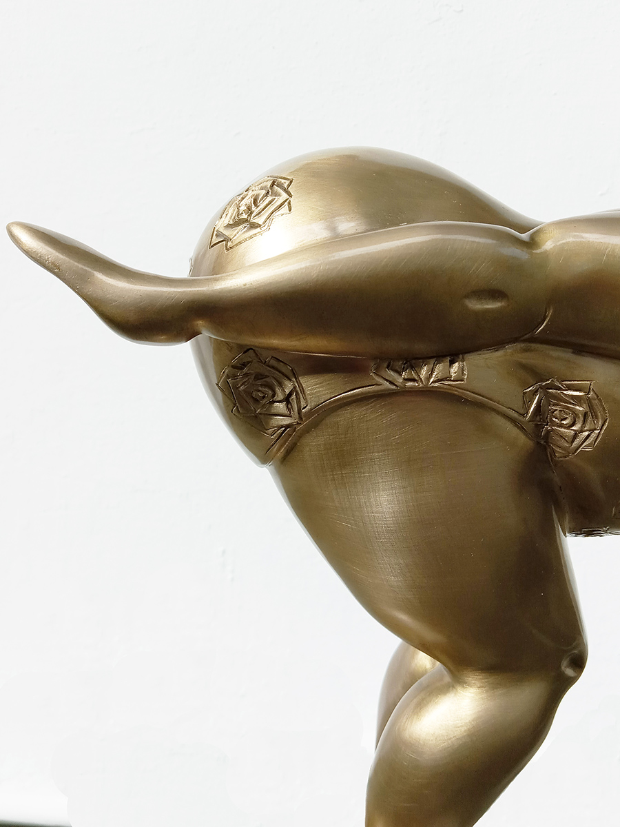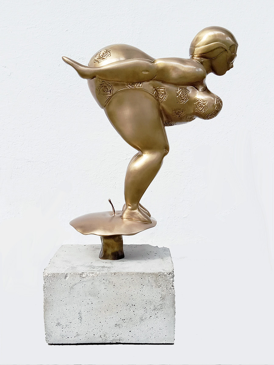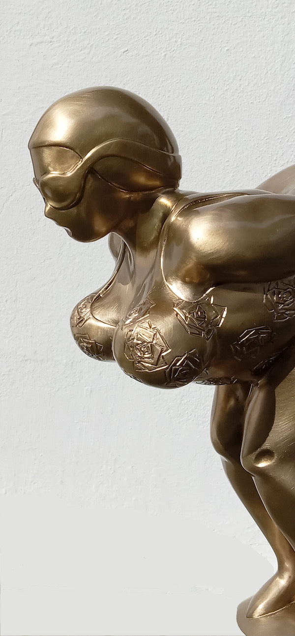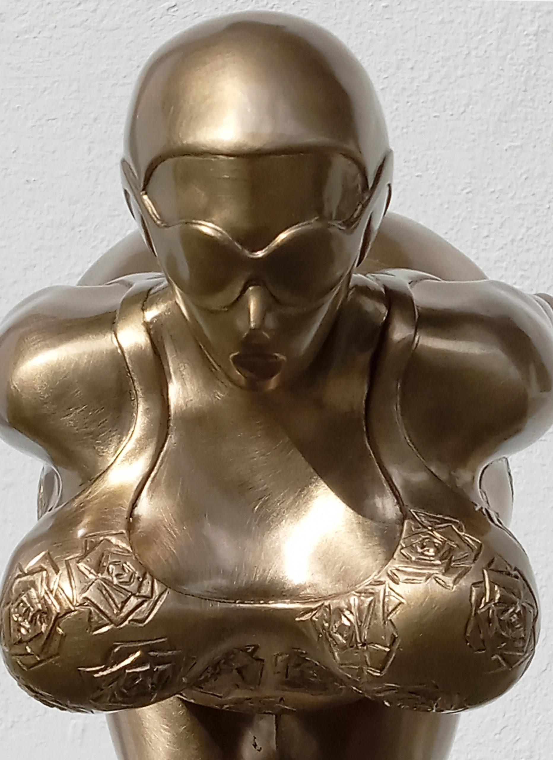 Whereas, in many historical depictions of Venus her physique was often the main catalyst for her form, I was more interested in the mental attributions which she embodies which then in turn would dictate her physical form. I feel every woman today (in her own right) is a Venus (or aspires to be) and if so what would she be? no doubt she embodies the attributes of strength, empowerment, confidence, fearlessness; the notion that she can dive into uncharted waters (from where she originally arose from in Greek mythology). Hence, this sculpture is a consequence of my exploration into these thoughts.